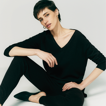 Our Essentials collection comprises all the classics your knitwear wardrobe needs in an array of timeless colours from oatmeal and cream to black and navy. Discover superlatively soft slouchy sweaters, roll necks and longline cardigans as well as comfy track pants and snug accessories.